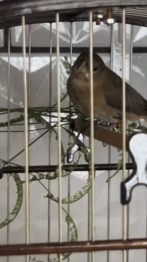 Coleiro pardo cantando bitola, filhote de coleiro papa capim de fibra#coleirocantandomuito#coleiropapacapimdemuitafibra#