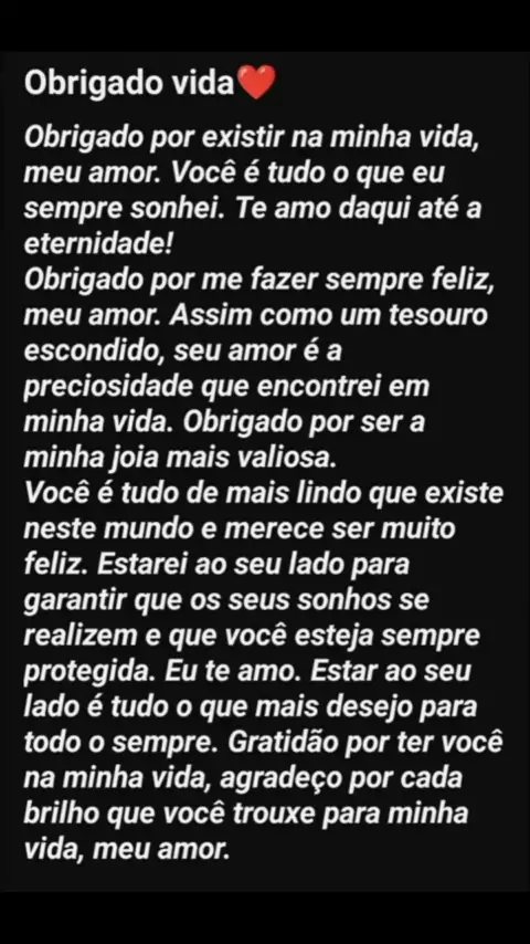 Desejo que você possa sentir os melhores sentimentos existentes, que tenha um dia cheio de boas surpresas e posso sentir o quanto é amado por tanta gente. Que possamos ser eternos namorados, nos apaixonando todos os dias um pelo outro sempre acompanhado de muito amor e cumplicidade. Que essa nova idade renove sua saúde, recarregue a coragem e a inspiração de viver, sempre com muita alegria, bom humor e divertimento. Que todos os seus sonhos possam ser realizados e eu possa fazer parte de todos .