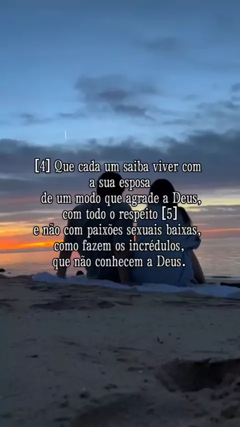 1Tessalonicenses 4:4-5  [4] Que cada um saiba viver com a sua esposa de um modo que agrade a Deus, com todo o respeito [5] e não com paixões sexuais baixas, como fazem os incrédulos, que não conhecem a Deus. . . . #diacomdeus #viraliza #reflexões #biblia #versiculo