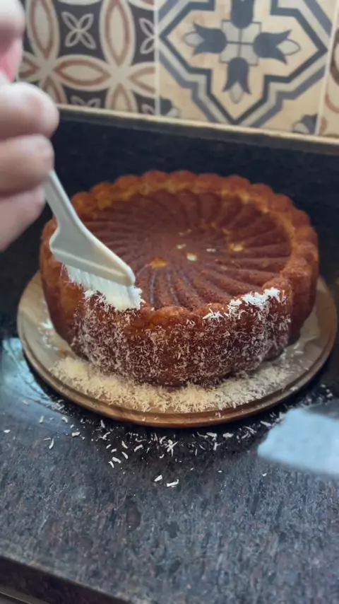Receita de inhoque de coco 🥥 ❤️ 4 copos americanos de farinha de trigo 4 ovos 1 /2 de leite 1 copo de açúcar 2colheres de manteiga ou margarina 2 colheres de fermento pra bolo 10 colhes de queijo ralado (queijo curado ) Calda 2copos de açúcar 2copos de água Coco ralado pra finalizar #roça #inhoque