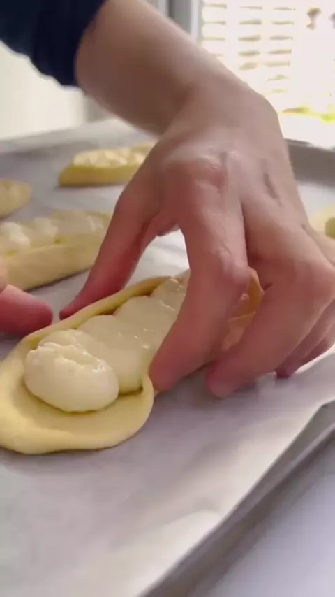 Receita de pãozinho recheado 👇🏻 Ingredientes: • 1 copo de leite morno • 2 ovos • 5 colheres de sopa de açúcar • 1/2 colher de sopa de sal • 7 g de fermento biológico seco • 1 colher de sopa de margarina • 3 colheres de sopa de óleo • 550 g de farinha de trigo Modo de preparo: Em uma tigela grande, coloque o leite morno, os ovos, a margarina, o óleo, o açúcar e o sal. Misture um pouco e, em seguida, acrescente o fermento. Vá adicionando a farinha aos poucos,
