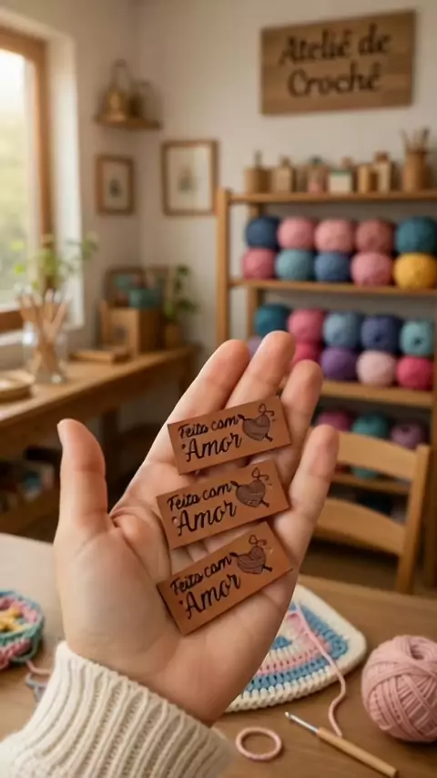 Etiqueta Sintética PU 100 Unidades com Gravação em Clichê para Artesanato #etiqueta #artesanato #shop