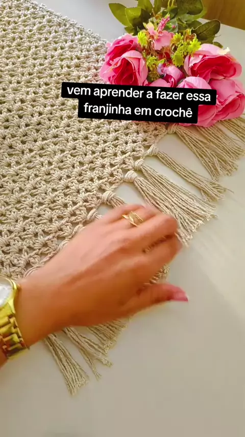 vem aprender a fazer essa linda franjinha para deixar sua peça de crochê mais elegante muito mais linda já deixo no comentário se você gostou desse vídeo já comenta bastante já salva esse vídeo para mais conteúdo #tapete #emprendimiento #jogodebanheirodecrochê