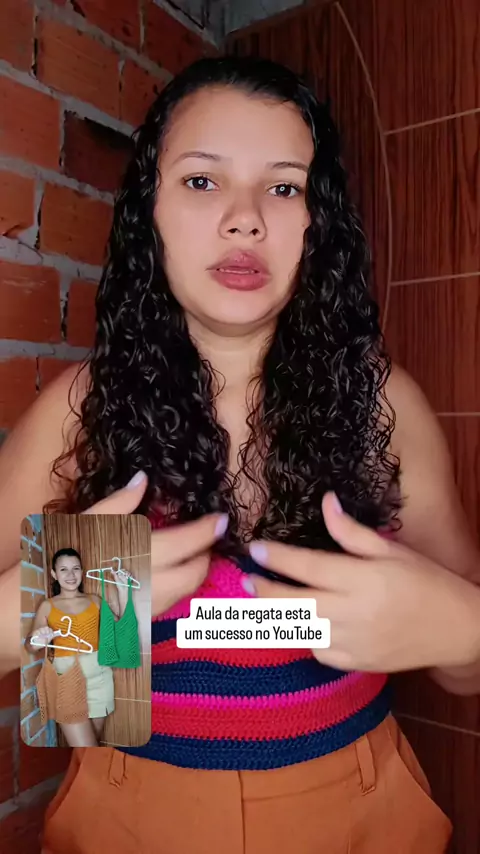 Vocês pediram e eu atendi! 🎥✨ Já estou gravando o tutorial da nossa regata queridinha, que sempre faz sucesso quando uso! Tem pronta entrega tamanho P na cor marrom por R\$ 99,00. Também aceitamos encomendas na cor da sua preferência, nos tamanhos P, M e G. Prazo de produção: 3 dias úteis Confira nosso catálogo e faça seu pedido! 💕🧶 ⠀ Se inscreva no meu canal do YouTube para fazer essa aula totalmente gratuita! O link está na bio de todas as redes sociais. \#RegataCrochê #CrochêDaNanda #Pron