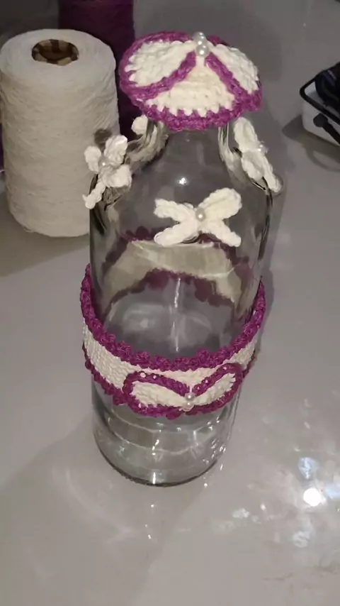 garrafa de vidro decorada com crochê #tutorialcroche #crochettutorial #artesanato #garrafadecorada #reciclagem