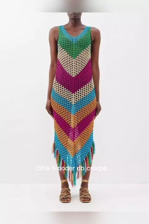 Vestido de crochê elegante e moderno ✨ Inspiração perfeita para quem ama peças artesanais sofisticadas. Crochê é tendência, é estilo e é identidade 💕 Você usaria essa peça? 💬 #croche #vestidodecroche #crocheinspiracao #crochemoderno #crochebrasil