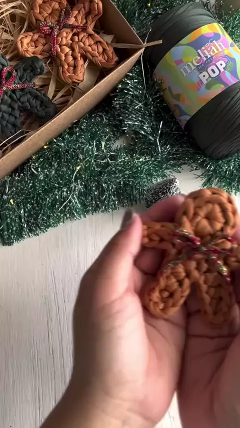 Biscoitinho de Natal em crochê 🧶 Os biscoitos de gengibre são um símbolo do Natal, representando celebração, união familiar e tradições passadas de geração em geração. E claro que eu precisava trazer uma versão dessas fofuras em crochê ✨ Anota esses “ingredientes” para reproduzir aí no seu ateliê: Fio de malha POP @meliahfios na cor caramelo Agulha 5mm Cola de silicone Lacinho para decorar Modo de Preparo 👩‍🍳 Círculo mágico com 10 pb Primeiro braço: 5 corr, pula 2 pontos e faz 3 pb Prim...