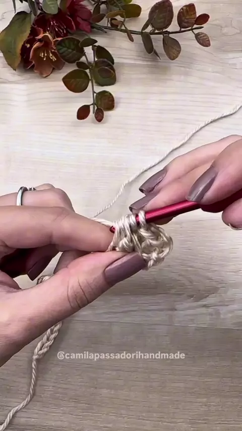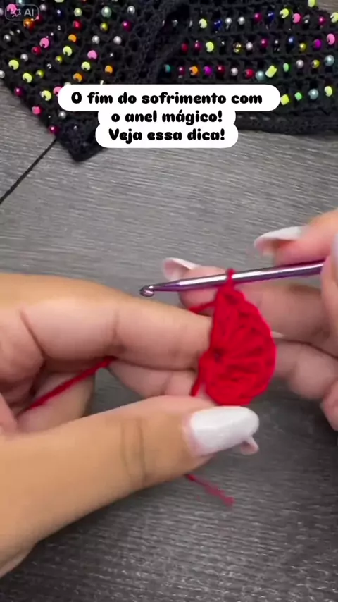 🧶Passo a Passo 1ª Carreira – Início Faça um anel mágico e suba 3 correntes (equivale a 1 ponto alto). Dentro do anel, faça 11 pontos altos. Feche com ponto baixíssimo. Total: 12 pontos altos #CarnaKwai #maisviews #croche #crochet #artesanato
