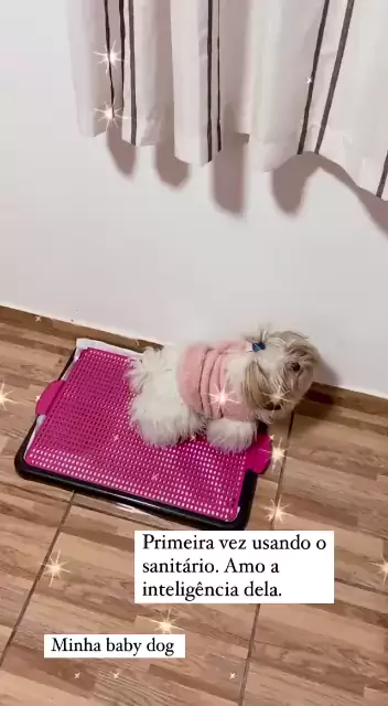 Aprendeu muito rápido como usar o banheirinho dela. 🥰 LINK NA BIO #shihtzu #shihtzus