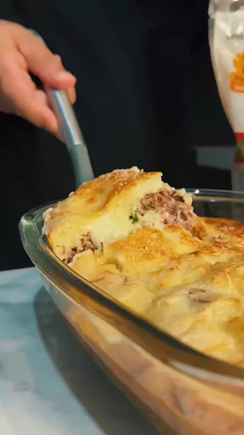 Bora fazer uma torta de carne seca com tapioca? . Ingredientes: 800g de charque magro(carne seca). 1 cebola picada. 3 pimentinhas de cheiro picadas. Cheiro verde. Chimichurri. Páprica picante ou doce. 200g de queijo coalho ou mussarela. Requeijão cremoso a gosto Parmesão para finalizar. Massa: 3 ovos. 250g de goma de tapioca. 1 colher de sopa de manteiga. 200ml de leite. 1 colher de sobremesa de fermento químico. 1 pitada de sal. #charque #carneseca #receitas #receitasimples