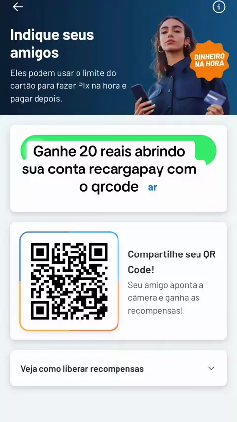 Ganhe 20reais usando o qrcode para abrir sua conta gratuita no recargapay #indicação #ganhe #recargapay #código
