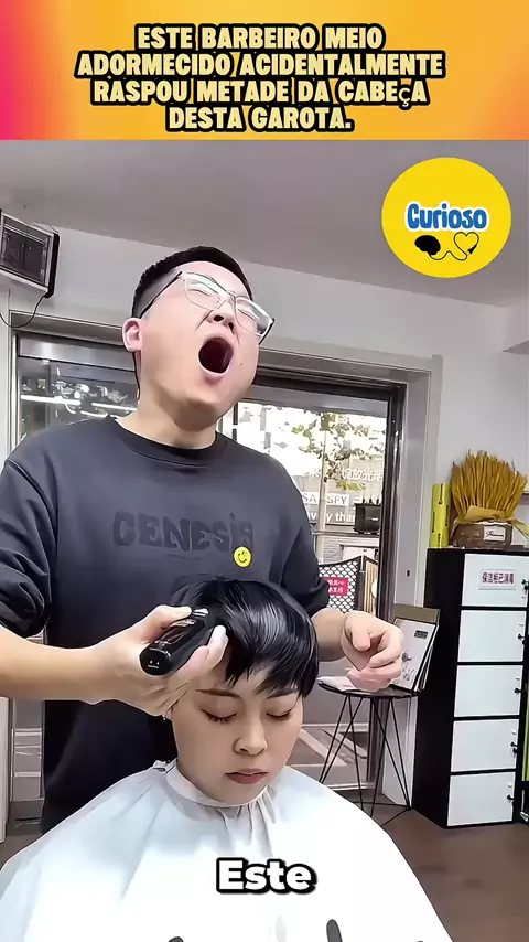 Este barbeiro meio adormecido acidentalmente raspou metade da cabeça desta garota.