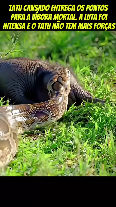 Tatu cansado entrega os pontos para a víbora mortal. A luta foi intensa e o tatu não tem mais forças.