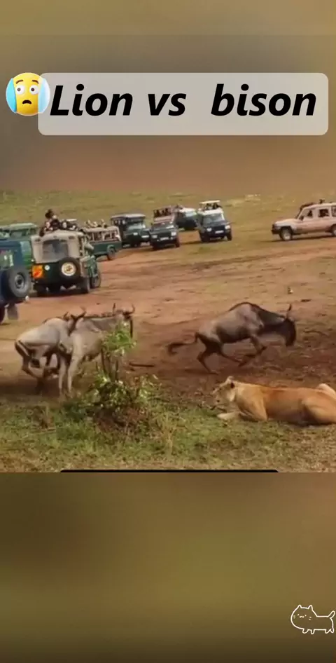 The lion was badly beaten by the buffalo.#lion #bison #wild