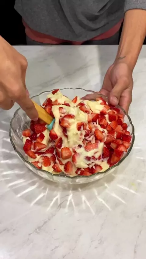 #Repost @cozinhandoemcasaofc BOMBOM de morangos feito na travessa 😍🤤🤤 Ingredientes 2 caixas de leite condensado (no vídeo eu falo q é uma, mas são duas tá) 200g de creme de leite 5 colheres de leite em pó 2 colheres de amido 600ml de leite 400g de morango Ganache 300g de chocolate meio amargo 200g de creme de leite #delicia #sobremesa #viral #kwaiviral
