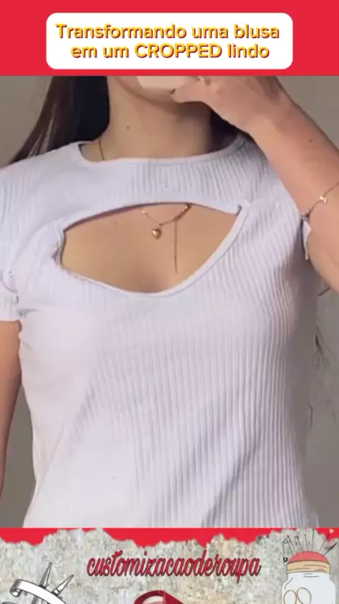 Transformando uma blusa em um CROPPED lindo. #customizacao #Cropped #look #dicademoda #roupasfeminina