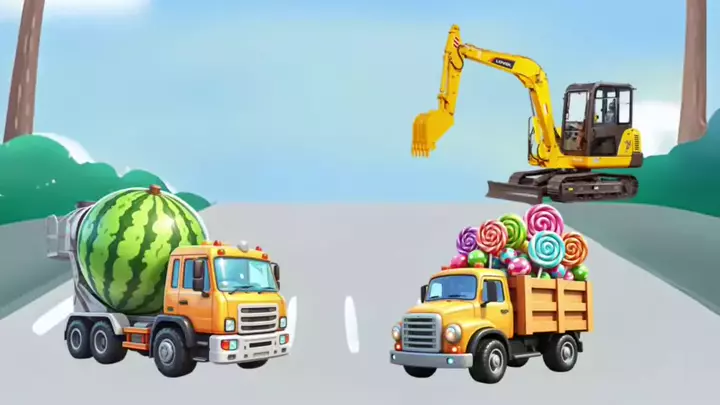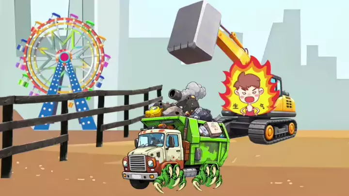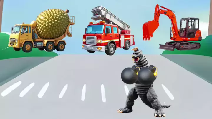 Monster itu memakan mobil konstruksi kecil, dan sang ibu menyelamatkan mereka.
