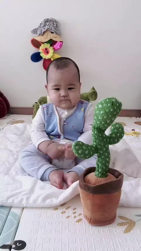 Kaktus iniđŸŒ”Bisa menyanyi dan menari, bisa merekam dan berbicara, dan membuat bayi saya sedikit bingung.😼 # Bayi yang dipaksa buka # Betapa lucunya anak manusia # Apa yang harus diambil hari ini
