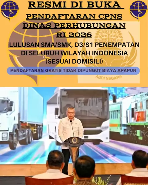 📢 INFORMASI PENDAFTARAN CPNS 2026 KEMENTERIAN PERHUBUNGAN RI Kesempatan berkarier sebagai Aparatur Sipil Negara (ASN) di lingkungan Kementerian Perhubungan terbuka bagi putra-putri terbaik Indonesia 🇮🇩 Kualifikasi Umum: ✔️ Laki-laki & Perempuan ✔️ Pendidikan minimal SMA/SMK hingga Perguruan Tinggi (D3, S1, S2, S3) ✔️ Usia 18–45 tahun ✔️ Sehat jasmani & rohani ✔️ Berkelakuan baik ✔️ Bersedia ditempatkan sesuai domisili masing-masing peserta 📄 Persyaratan Administrasi: Curriculum Vitae (CV) t...