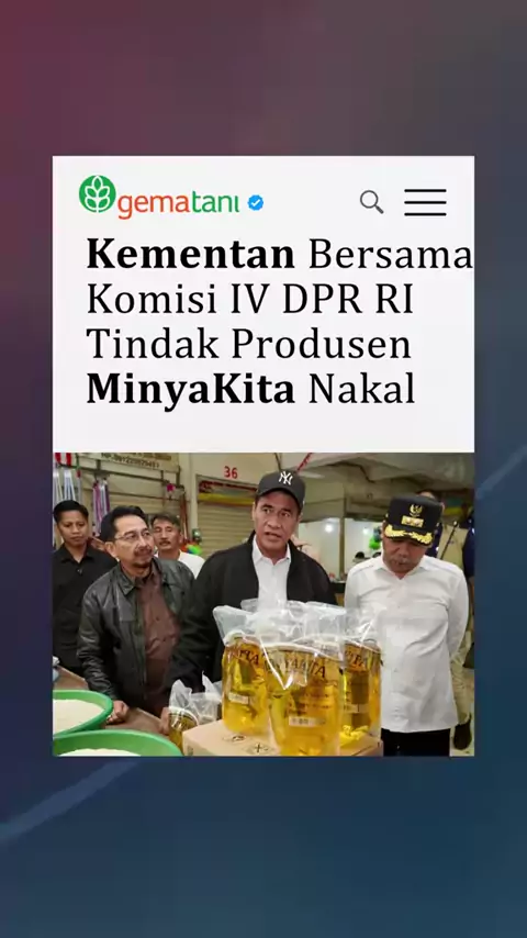 DPR RI bersama Kementerian Pertanian melaporkan produsen minyak goreng MinyaKita yang menjual di atas Harga Eceran Tertinggi (HET). Langkah ini diambil menyusul temuan pelanggaran saat sidak Menteri Pertanian Andi Amran Sulaiman di Pasar Tagog, Padalarang, Bandung Barat. Dalam sidak tersebut, MinyaKita ditemukan dijual Rp18.000 per liter, jauh di atas HET pemerintah Rp15.700. DPR Komisi IV menegaskan dukungan penuh terhadap langkah tegas Kementan untuk menindak pelanggaran harga pangan strategi...