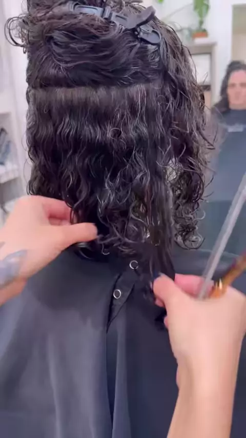Eu absolutamente adoro um bob sem corte no cabelo encaracolado Há um truque para obter essa linha super reta e super sem corte - os cantos externos dos dois quadrantes traseiros precisam ser significativamente mais longos do que o centro e ainda mais longos nos quadrantes laterais para parecer "par" em toda a volta. Isto é por causa da forma como o cabelo encaracolado surge em áreas onde a linha do cabelo natural se curva. Para obter os comprimentos adequados, eu usei um pente de dentes largos ...