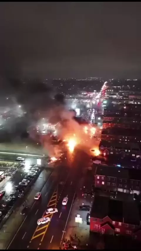 🇺🇸⚠️Imagens aéreas mostram os destroços e vários incêndios no local do acidente aéreo na Filadélfia. O avião foi identificado como um Learjet 55, operando como ambulância aérea médica com o registro XA-UCI do México #incendio #acidente #avião #helicoptero