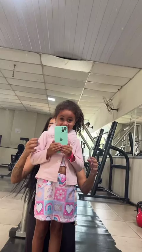 treina, a gente vira LEOA de verdade 🐅💪 Eu levanto o braço e sai o rugido… ela levanta também e vem o miadinho mais fofo da academia 🐱🏋️‍♀️💖 É assim mesmo: a gente inspira… e elas vêm logo atrás! Cuide de você, fortaleça seu corpo e seja leoa na sua própria vida. Seus filhos estão olhando 👀🔥 Bora treinar, mamães? #MãeLeoa #MãesQueTreinam #ForçaFeminina