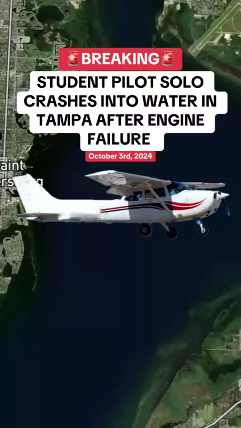STUDENT PILOT SOLO CRASHES INTO WATER IN TAMPA AFTER ENGINE FAILURE#news#studentpilot#atc#tampa#water#crash#plane