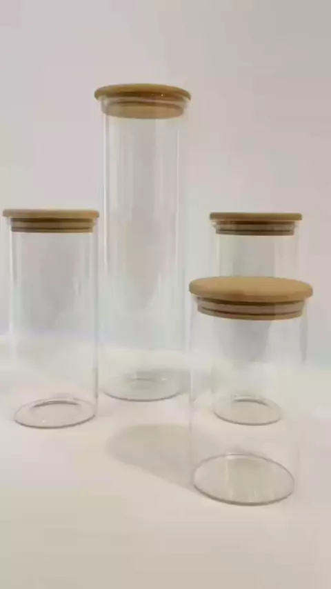 kit 3 potes de vidro com tampa de bambu comenta eu quero que mando o link