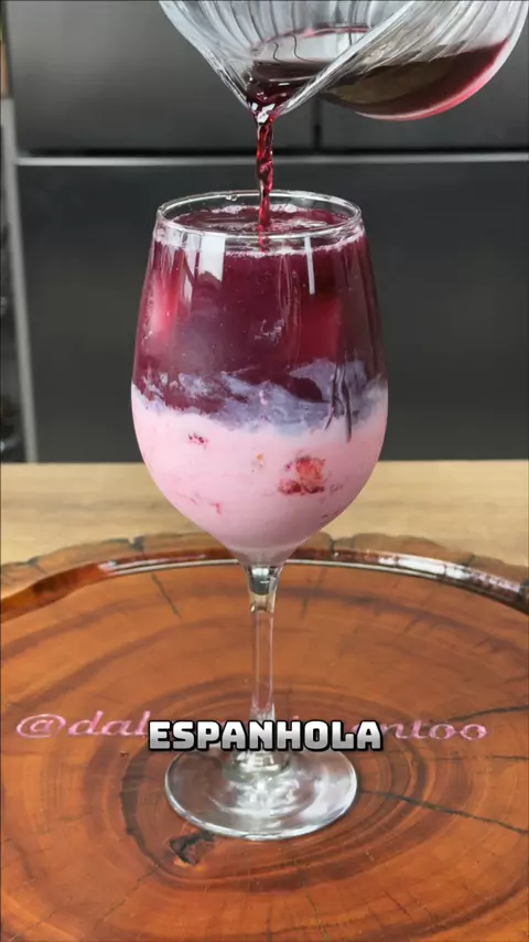 Espanhola de morango 🍓 Ingredientes: 6 Morangos 4 Colheres de leite condensado Gelo Suco de uva integral #receitasfaceis #receitas #drinks #drink #explorar