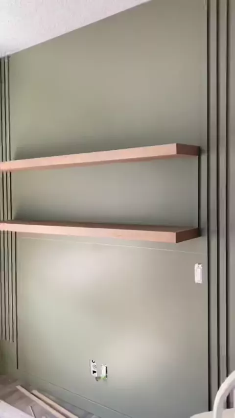 Essa transformação está se encaixando tão bem! Estou tão orgulhosa de como essas prateleiras flutuantes ficaram e mal posso esperar para mostrar a parede de ripas acabada! # diytutorial # doityourselfchallenge # floatingshelves # diyshelves # girlswhobuild # ladieswhodiy # doityourselfhome # homeprojectdiy # doityourselfproject # powertoolsandponytails