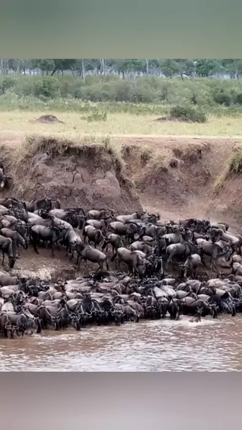 uma manada de gnus bebendo água na beira do rio Mara tanzânia #kwai #viral
