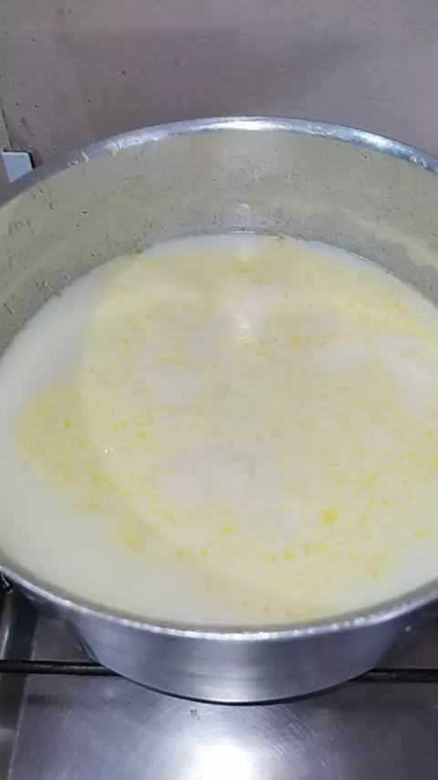 Requeijão cremoso 1L de leite 5 colheres(sopa) de vinagre 2 colheres de margarina sal à gosto #requeijao #requeijaocaseiro #kwai #receitas