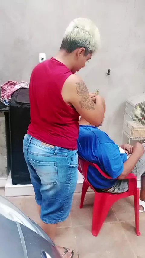 ela cortando cabelo do vovô #cabelo #RegistroDeVida