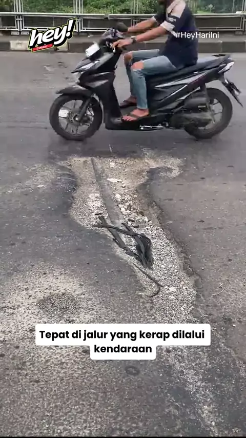 Terpantau lubang cukup dalam di flyover Gerbang Tol Baros, Kota Cimahi. Kondisi ini berpotensi membahayakan pengguna jalan, terutama pengendara roda dua yang melintas. Warga diimbau lebih berhati-hati dan mengurangi kecepatan saat melewati area ini. Semoga segera ada penanganan dari pihak terkait demi keselamatan bersama. Lagi aya nu rame naon di Cimahi? Yuk coba share dan tag @heycimahi 😎#HeyMedia#UrangCimahi#CimahiKiwari