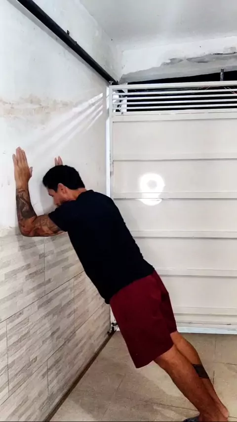 Dia 50, 100 reps de tríceps testa na parede. #desafio100x100 #foco #TRÍCEPSTESTA