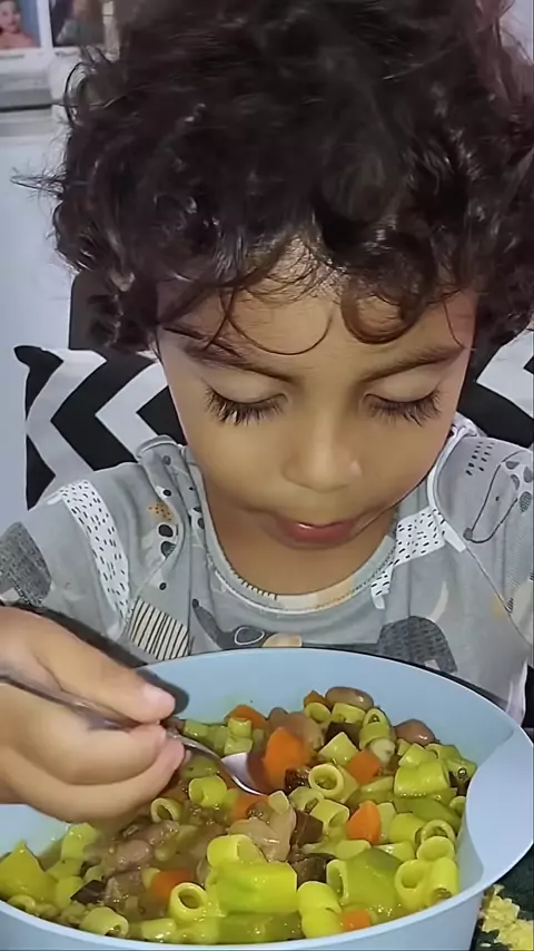 Macarrão que ele ama e hambúrguer de grão de bico pela primeira vez, não gostou muito, mas comeu tudo kkk #bebecomendo #comidasaudavel #asmrdecomida