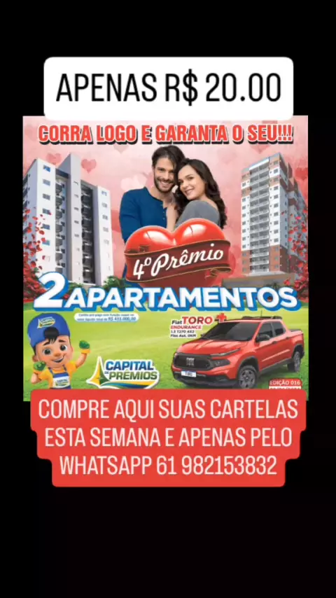 COMPRE AQUI PELO WHATSAPP 61 982153832 Edição Especial Dia dos Namorados do Capital de Prêmios! 🕒💘 Não perca a chance de ganhar MAIS DE MEIO MILHÃO DE REAIS EM PRÊMIOS! 🤑 Compre agora o seu pelo link da nossa BIO ou visite o Ponto Pé Quente mais próximo! 🔥 O Capital de Prêmios: onde sonhar nunca custou tão pouco! 🍀🍀🍀 #CapitalDePrêmios #PrêmiosIncríveis #RealizeSeusSonhos #Brasília #DistritoFederal