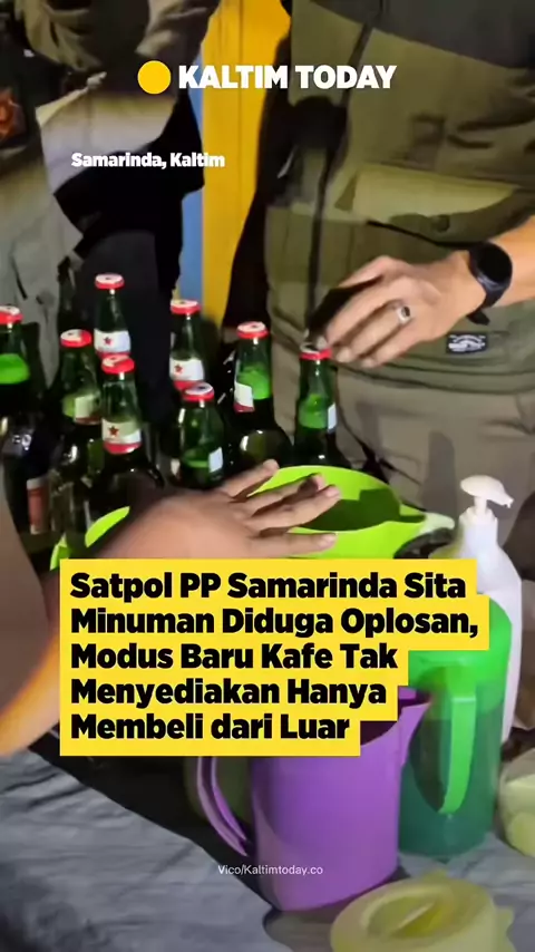 Satpol PP Samarinda menyita minuman yang diduga mengandung alkohol dalam penertiban di sebuah kafe di Jalan Dwikora, Kelurahan Simpang Pasir, Kecamatan Samarinda Seberang, Minggu (15/2/2026) dini hari. Kepala Satpol PP Samarinda, Anis Siswantini, menyebut minuman tersebut diduga merupakan campuran bir dan anggur yang diracik di dalam teko. Berdasarkan keterangan pemilik, minuman dibeli dari luar lalu dicampur di lokasi atas permintaan pelanggan. Meski tidak ditemukan penjualan langsung minuman ...