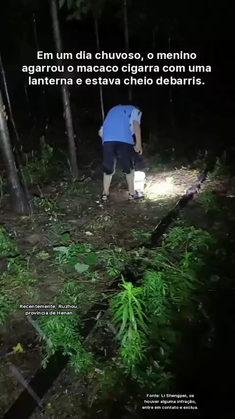 Em um dia chuvoso, o menino agarrou o "macaco cigarra" com uma lanterna, e o balde estava cheio. (Fonte do vídeo: Li Shengpei)