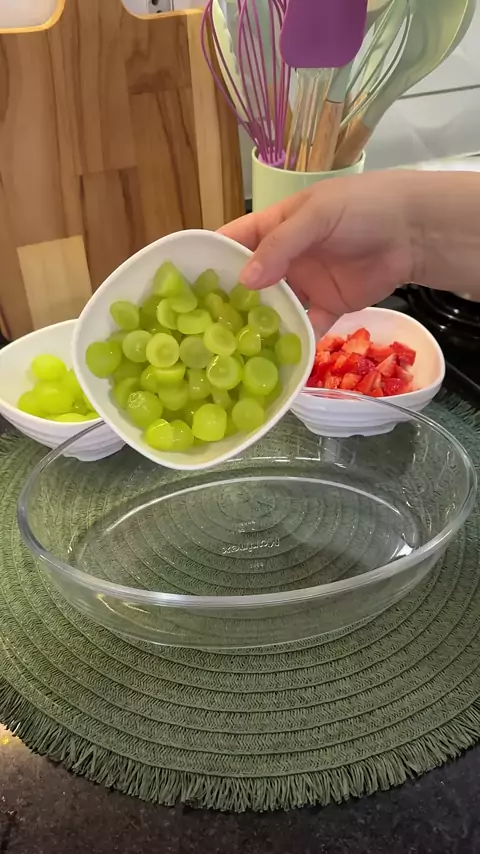 bomba de morango com uva na travessa 😋
