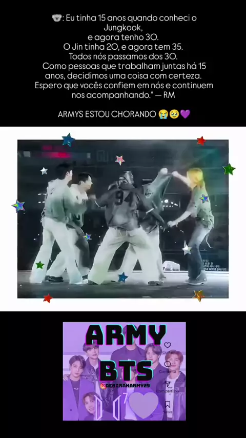 💜DE ARMY PARA ARMY💜 PARCERIA:👉deboraharmy29@gmail.com 📢SUA FONTE DE INFORMAÇÕES ENTRETENIMENTO E NOTÍCIAS! TUDO SOBRE O MUNDO BTS⟭⟬⁷ •LIVES •VIDEOS •SHOW
