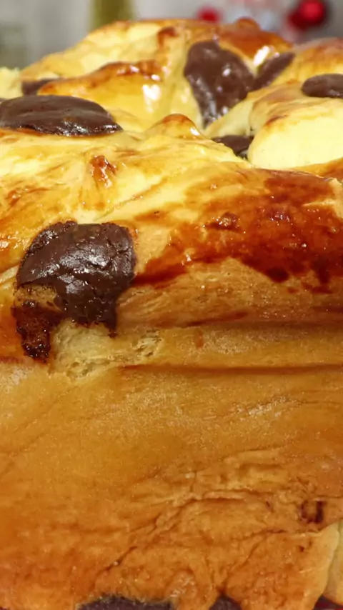 Rosca caseira natalina com muito chocolate! Ingredientes: 1 envelope de fermento biológico seco 1 xícara de leite morno ½ xícara de açúcar refinado 2 ovos 1/2 xícara de óleo essência de panetone 1 pitada de sal farinha de trigo ate chegar ao ponto (usei 650g) 2 colheres de sopa de manteiga levemente derretida 300g de gotas de chocolate meio amargo 1 gema para pincelar Validade: 3 a 4 Dias. 📌 Conheça meu canal no YouTube, Débora Vasconcelos receitas, te encontro lá 😘 #rosca #receitafacil