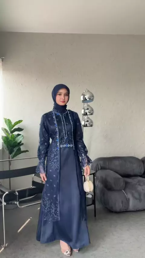 Dress to impress in navy!✨ #outfitideas #ootdinspiration #ootdhijabstyle #dresskondangan #onesetkekinian