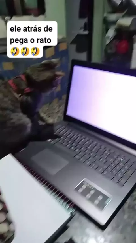 meu gatinho atrás de pega o rato no computador 🤣🤣🤣 #gatinho #rato #pegaele #kwai