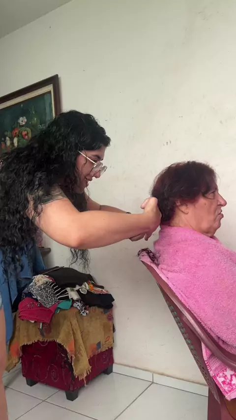 Minha mãe pediu pra cortar o cabelo dela, o que vocês acharam? #minharainha #MãeeFilha #cortandocabelo #Pindoretama #familia