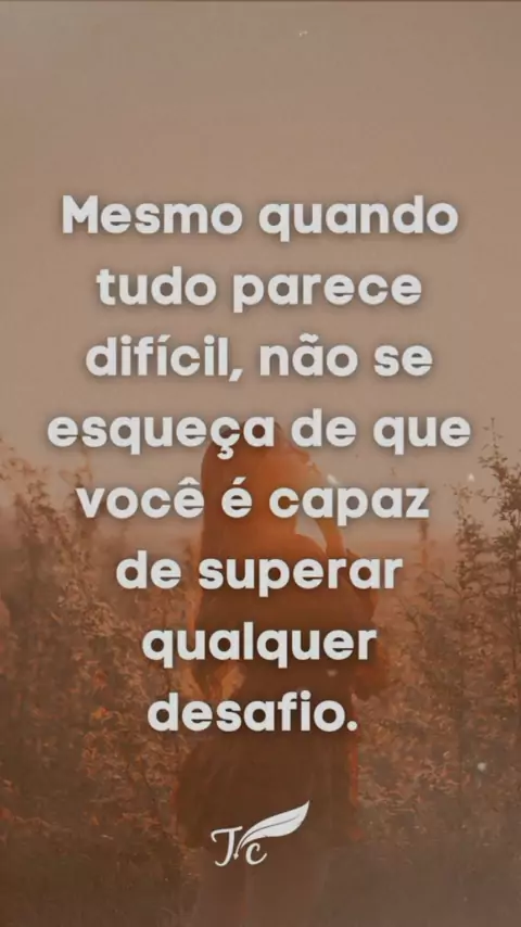 Mesmo quando tudo parece difícil, não se esqueça de que você é capaz de superar qualquer desafio.😉🙌💖