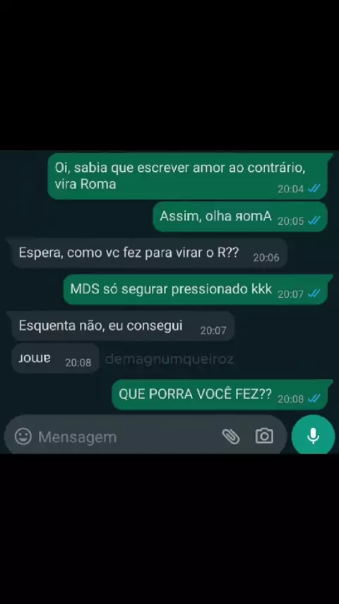 Sabia que amor ao contrário é Roma? E se for mais longe… ɹoɯɐ #kwaiviral #conversadewhatsapp #memebr #Roma #humorbr