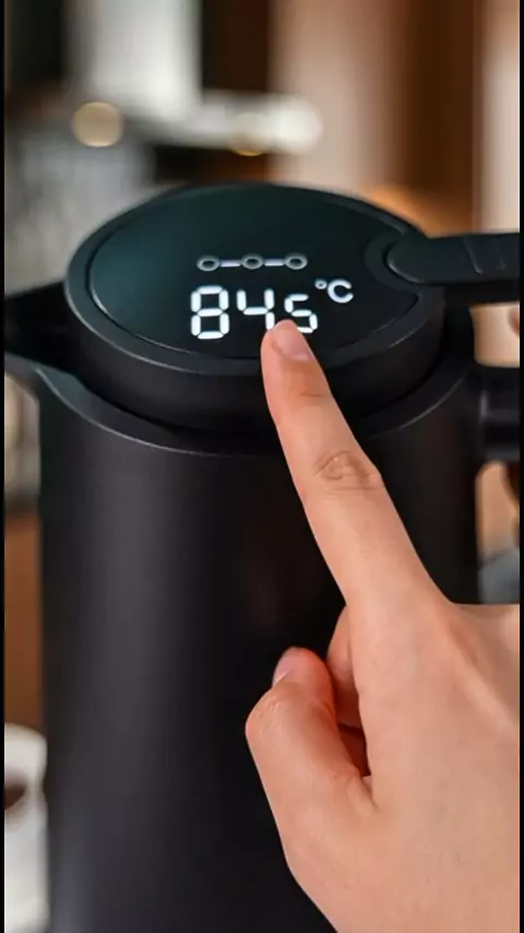 GARRAFA DE CAFÉ TÉRMICA DE TERMÔMETRO LED DIGITAL SENSIVEL AO TOQUE COM CABO MADEIRA 1 LITRO 257 Vendidos