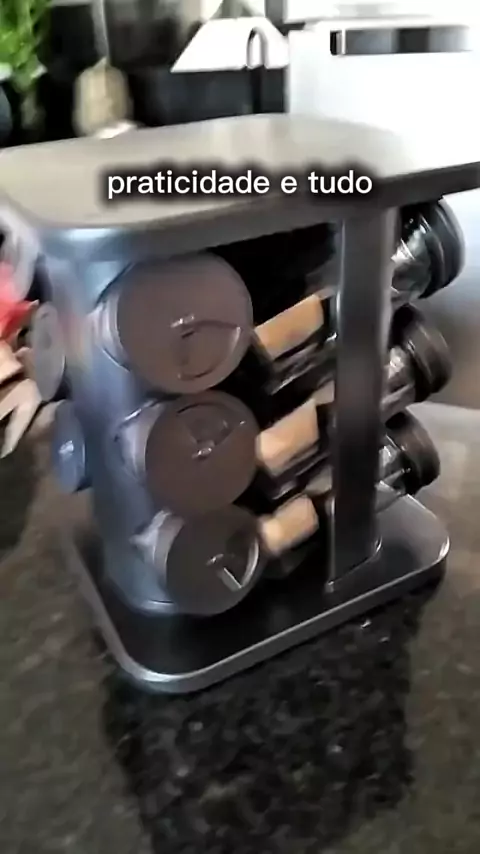 Porta Tempero Preto Giratorio Com 12 Potes Vidro 2.499 Vendidos